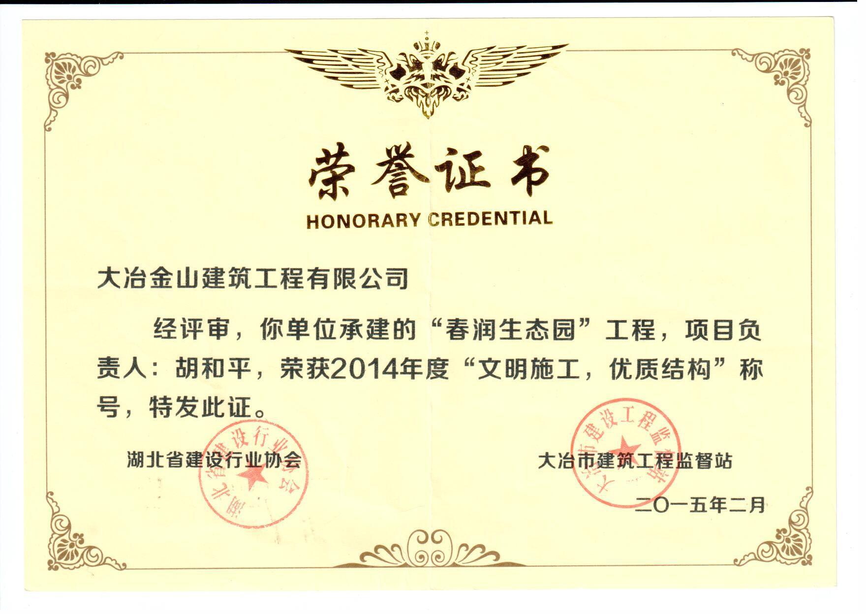 公司多年來先后承建了多項工程,已獲得多個優良工程,并多次被評為省、市50強企業,先后獲得先進單位、先進施工企業、安全生產先進單位等榮譽稱號。公司近幾年來民用建筑、古建筑、市政工程、園林景觀工程遍布全國相關省區,如:大冶市金福花園、集寧現代物流園區絲路文化博覽園二期建設項目一標段、烏蘭察布市集寧戰役紀念館周邊改擴建二期建設項目、烏蘭察布市人民公園博物館廣場周邊景觀工程、錫林浩特市錫林湖、濕地生態水系治理工程PPP項目(二標段)、合肥開福寺、明教寺修復,巢湖市相隱寺、馬鞍山小九華寺建設等。深受建設單位和相關行業管理部門的廣泛好評。